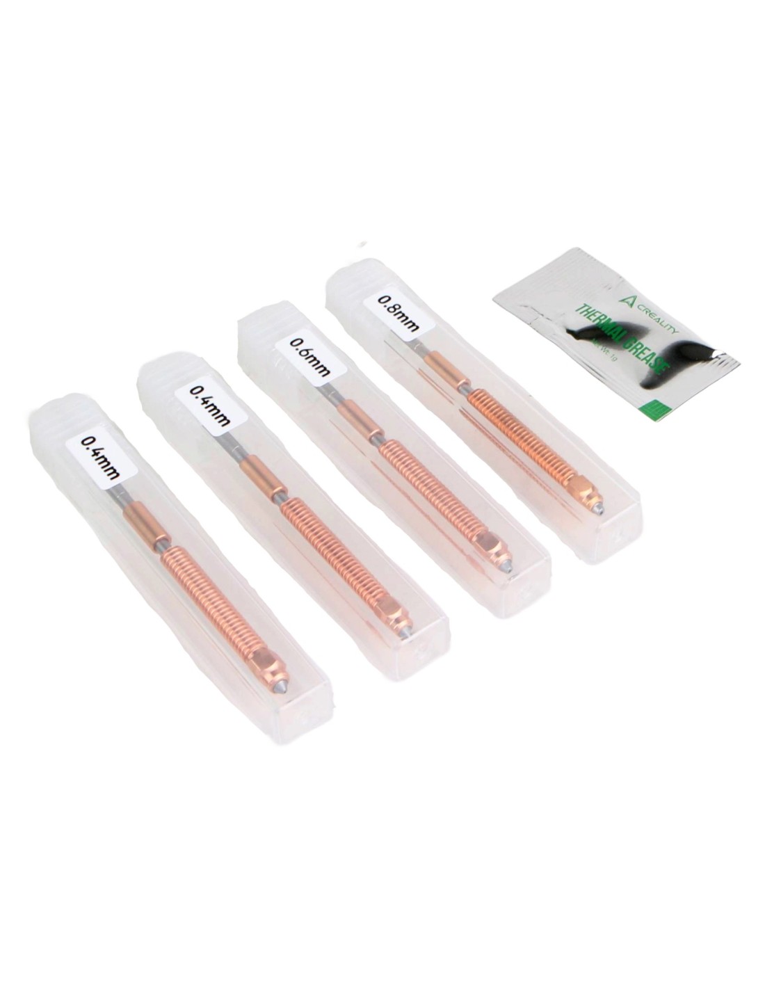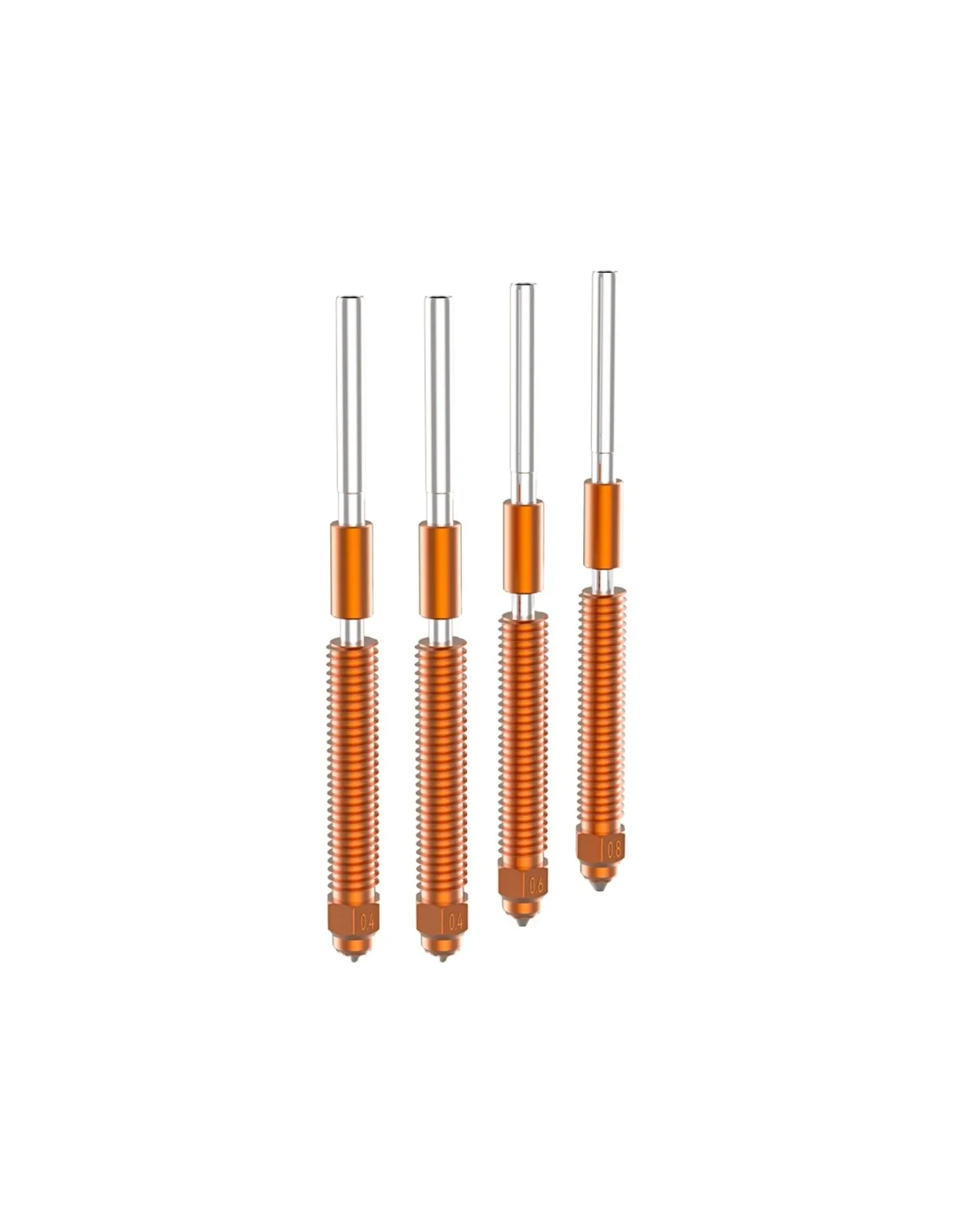 This kit of four Quick-swap Creality Unicorn Nozzles for K2 series includes 0.4mm, 0.6mm, and 0.8mm specialised tri-metal nozzles for high-speed printing.